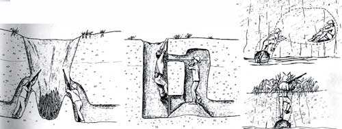 Если дозор обнаружил люк, он приоткрывает его, определяя свое местонахождение. Командир патруля определяет в каких целях этот люк может быть использован. Тоннели, ведущие в тыл, нужно блокировать и минировать. При этом сначала устанавливаются мины, а затем заграждения, которые располагаются на некотором удалении от мин.